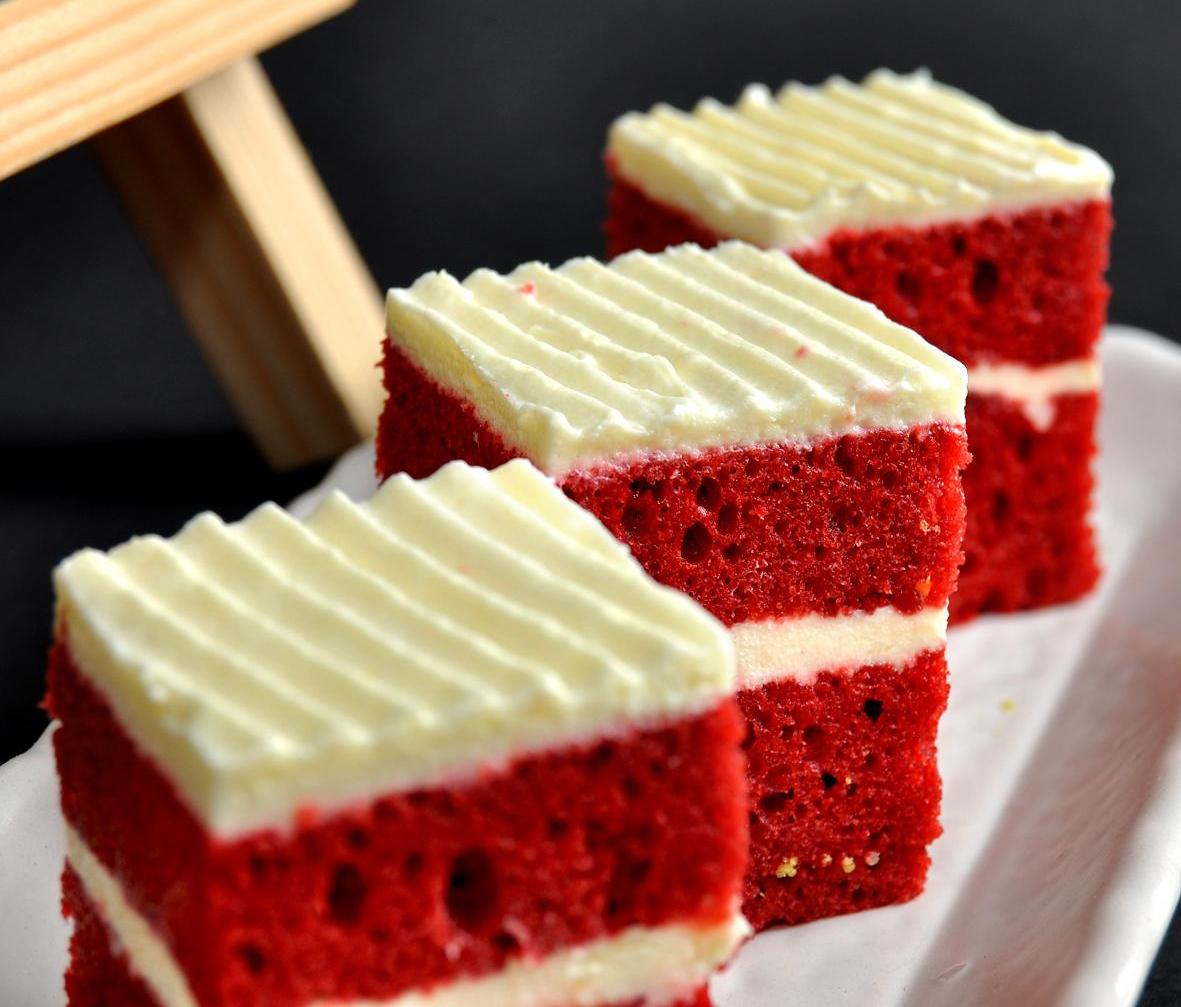 Như một quý cô sang trọng, quý phái, Red Velvet Cake là món tráng miệng được "săn đón" trong tất cả những bữa tiệc vì vẻ ngoài hấp dẫn với phần cốt bánh đỏ rực, xen kẽ là những lớp kem trắng mịn. Chiếc bánh mini này còn có vị cacao đậm đà, chút chua chua, mặn mà của kem phô mai và dâu.Bánh phù hợp với các bữa tiệc gia đình,tiếp khách,liên hoan,sinh nhật.